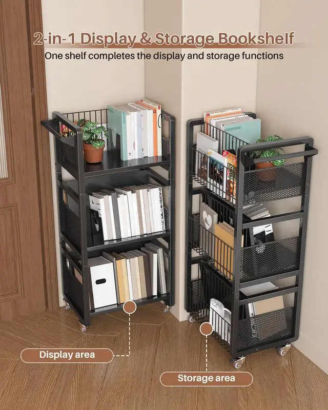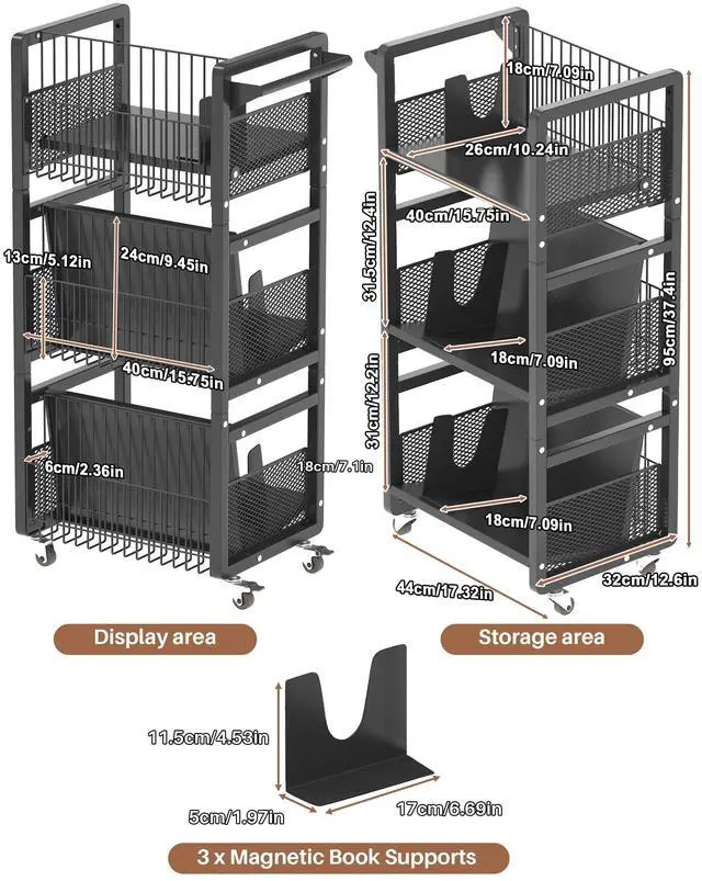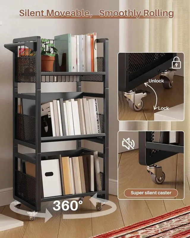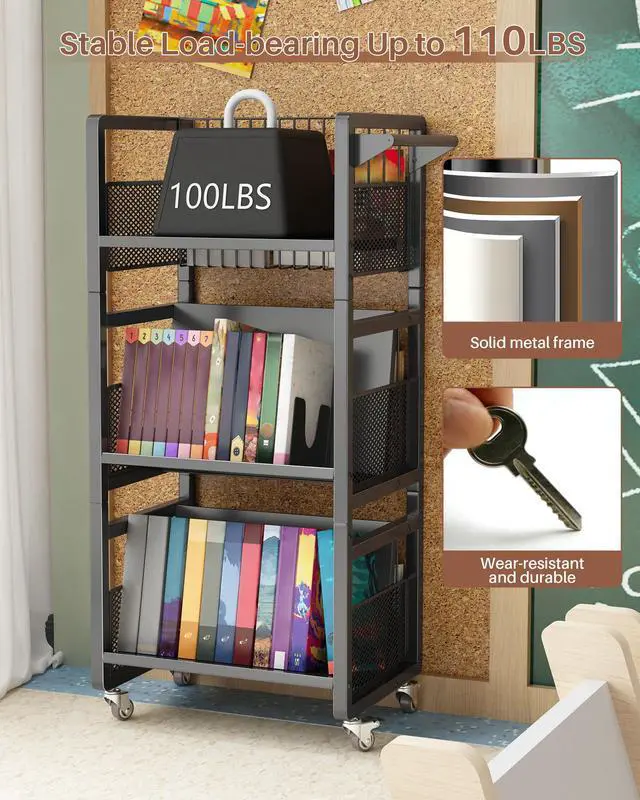 | Additional Features | 3-Tier Storage, Heavy Duty, Rolling Book Cart with Wheels |