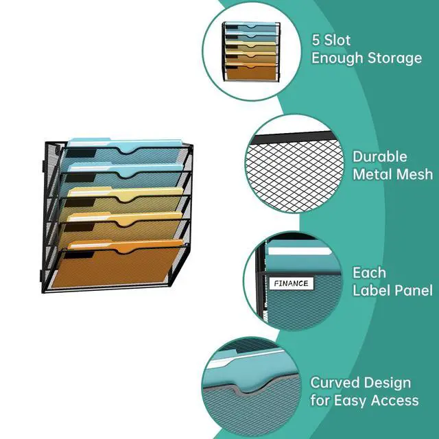 This black wall file organizer gives your desktop a sleek and minimal look and can easily fit into various environments like office, home, school and more, making it a great decoration to keep your office files organized.