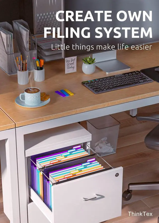 CREATE OWN FILING SYSTEM : Bright labels light up the drawers. The hooks fit along the rails and glide effortlessly. Say goodbye to overflowing hanging files. Quickly find the files you want and close drawers without hindrance. It's the little things that make life easier