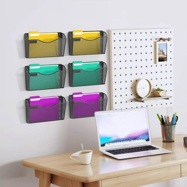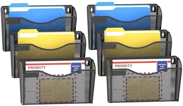 Samstar 6 Pack Mesh Wall File Holders, Wall Mount File Organizers Mail Holders Wall Pockets