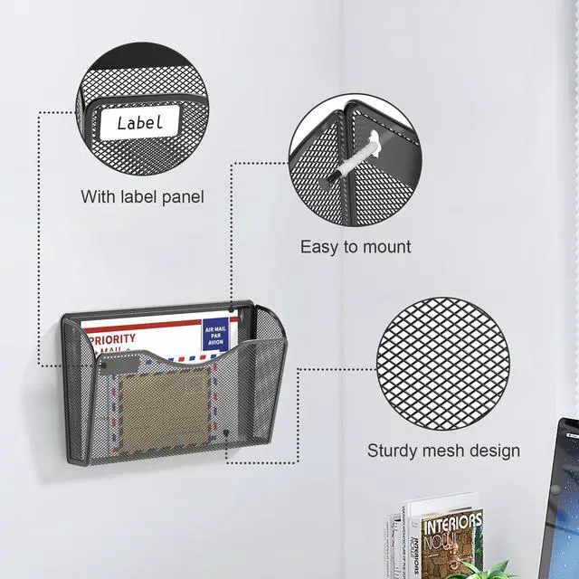 These wall file pockets comes with mounting screws that can be mounted together or separately as you prefer .With Label Panels, more convenient to figure out what`s in the pocket.Mesh Design,more durable and solid than normal plastic ones.