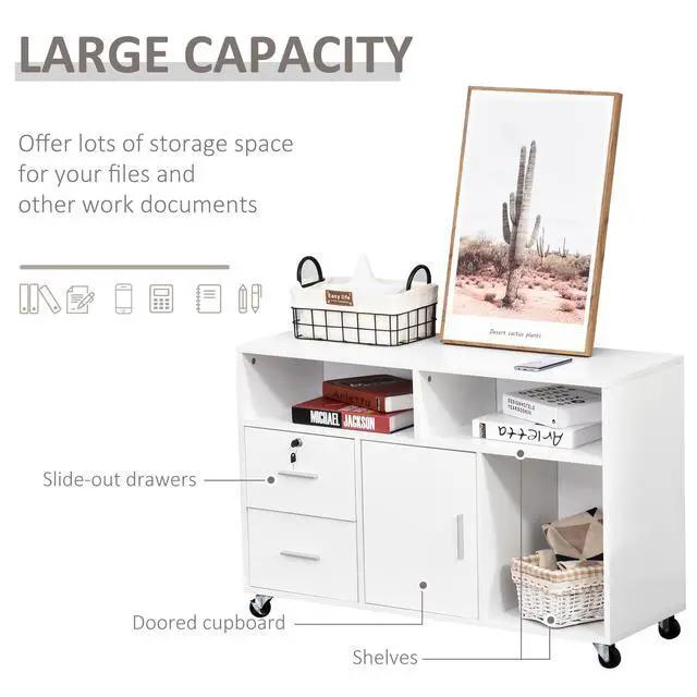 Easy Mobility: 4 smooth-rolling casters with 2 locking brakes make this office cabinet organizer super simple to move and relocate throughout the office or house.
