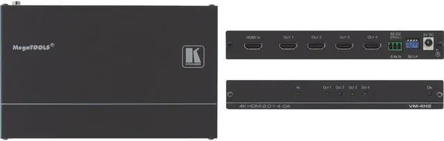 * Package Contents: <ul> <li>VM-4H2 1:4 4K HDR HDMI DA</li> <li>Power supply</li> </ul><br /> * Product Type: Video Distribution Amplifier<br /> * Product Type: Video Distribution Amplifier<br /> * Weight (Approximate): 14.11 oz<br /> * Product Line: MegaTOOLS<br /> * Length: 1"<br /> * Product Model: VM-4H2<br /> * Product Name: VM-4H2 1:4 4K HDR HDMI DA<br /> * Product Line: MegaTOOLS<br /> * Brand Name: Kramer<br /> * Brand Name: Kramer<br /> * Width: 7.4"<br /> * Depth: 4.5"<br /> * Number of HDMI Inputs: 1<br /> * Number of HDMI Outputs: 4<br /> * Number of HDMI Inputs: 1<br /> * Number of HDMI Outputs: 4<br /> * HDMI In: Yes<br /> * HDMI Out: Yes<br />