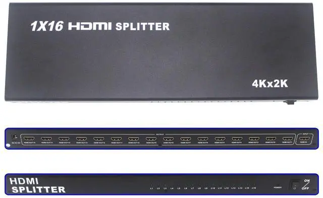 2. Connect 16 HDMI cables from each displayers (monitors or projectors) into the HDMI Splitter outputs.