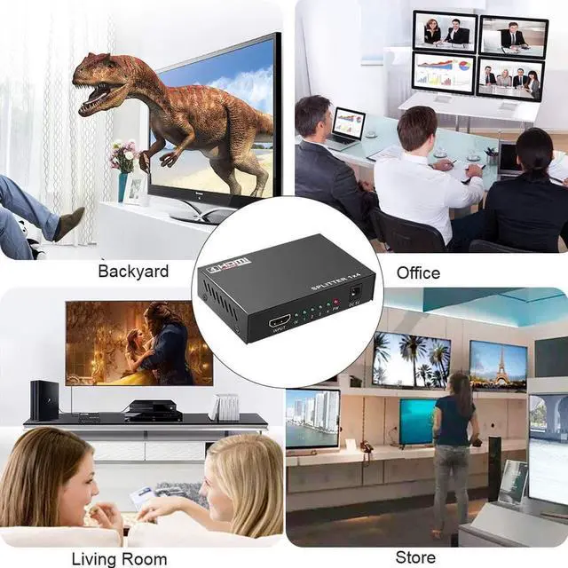This HDMI splitter 1 in 4 out can simultaneously streams video signal and audio signal from 1 HDMI devices to 4 HDMI displays, showing a superb picture quality and smooth sound. There is no flash, no lag, or drop in resolution.