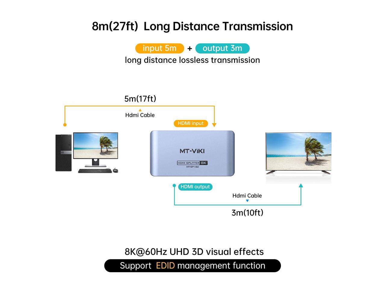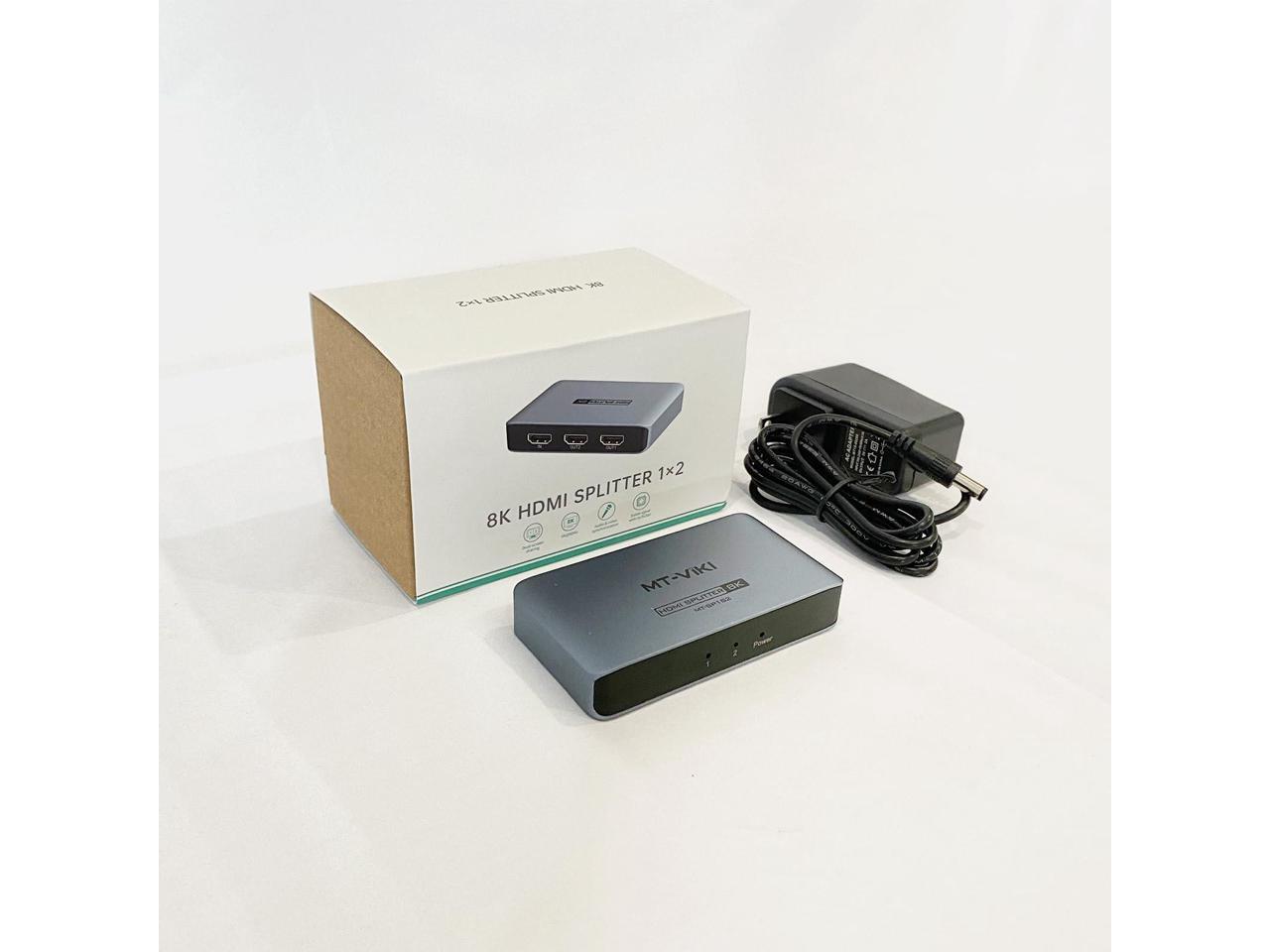 MT-VIKI HDMI 2.1 Splitter 1x2, 8K@60Hz & 4K@120Hz Duplicator, 40Gbps High Speed, HDCP 2.3, Aluminum Casing Mirror Dual Displays (Non-Bidirectional, EDID Management)