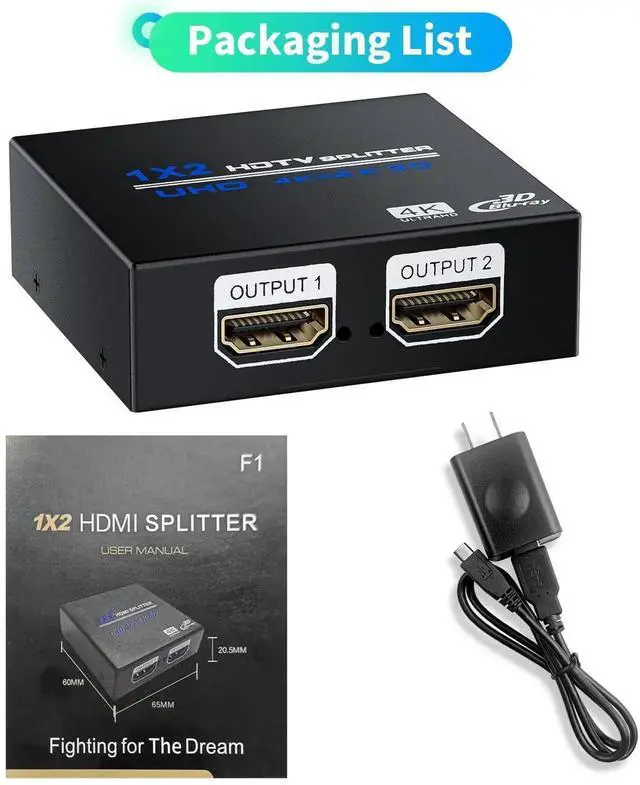This HDMI splitter 1 in 2 out is easy to set up and operate. Support 4K@30Hz, 3D and HDR