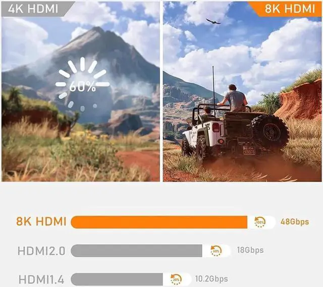 8k High Resolution: Support Output resolution 8K@30/60Hz, 4K@60/120Hz, 2K@144Hz,1080P@24/50/60Hz/240Hz, 3d, high speed 48Gbps transmission, compatible with multiple resolution devices, bringing you a wonderful visual experience. Please make sure your source devices,your cable and your monitors can all support the resolution and refresh rate you need to output. (Cable length standard 3m(Max) HDMI 4K cable (4K/60Hz), Standard 1.5m(Max) HDMI 8K cable (8K/60Hz))