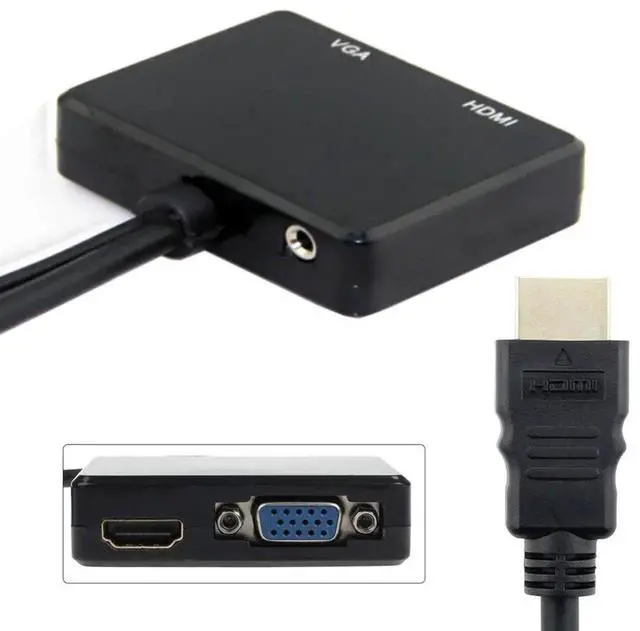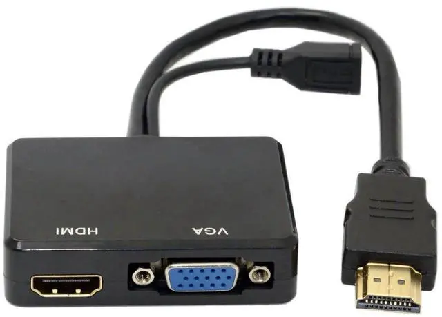 JSER HDMI to VGA & HDMI Female Splitter with Audio Video Cable