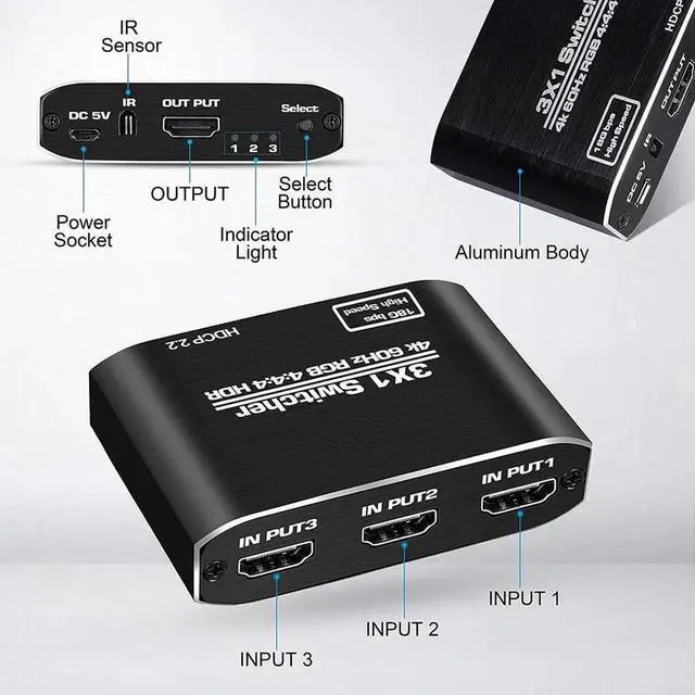 The Latest 3 in 1 Out HDMI Switch : 4K@60Hz HDMI 2.0 Switcher expand 3 HDMI Ports on your TV &HD display for more HDMI devices,Seamlessly switch between games, TV, PC, etc HDMI port devices.No complicated setup and drivers required, plug and play.