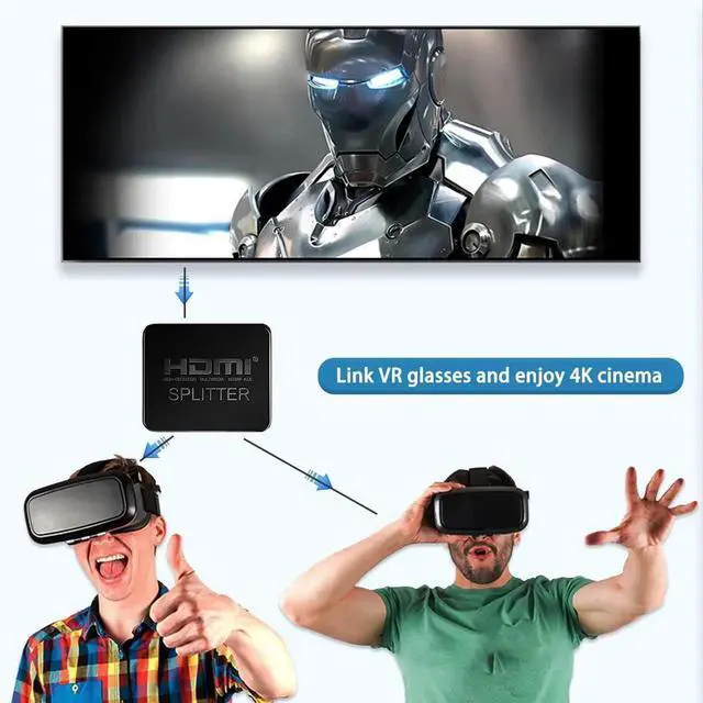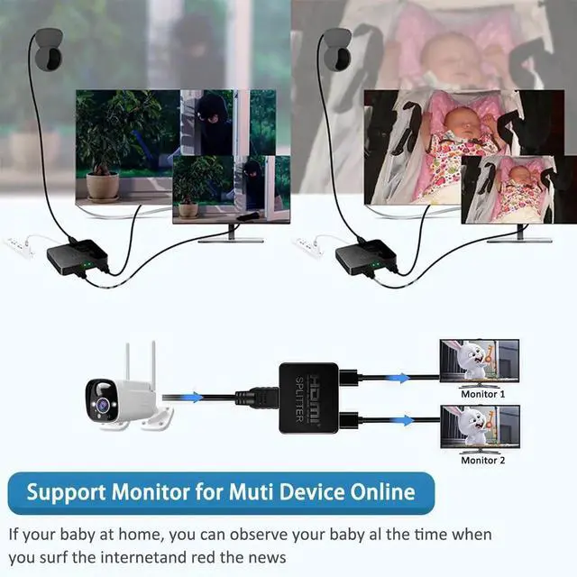 HDMI Splitter 1 in 2 Out for Dual Monitors with a 5ft HDMI Cable 4K UHD Display for 2 Monitors- Copy 1 Source to 2 Displays at The Same Time
