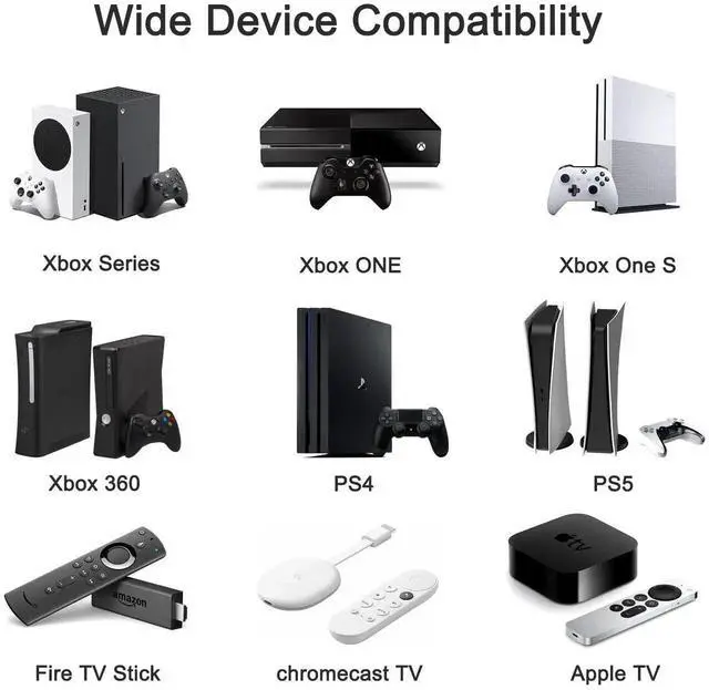 1. 4K HDMI Switcher is compatible with a wide range of HDMI source devices, including PS3/4/5, Blu-ray players, Fire TV stick, Xbox 360, Xbox One, Xbox series x, Nintendo Switch/OLED, Apple TV, DVD players, Roku, PC, Laptop, HDTV, and projectors.