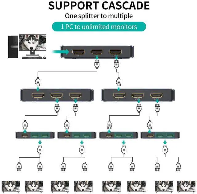 MT-S182, This 8K UHD HDMI splitter 1 in 2 out can mirror/duplicate 1 HDMI input source to 2 HD output monitor simultaneously Warm ReminderNOT HDMI SWITCH, does NOT support 2 in 1 out.