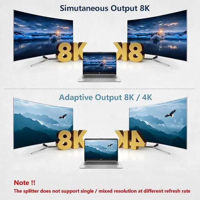 Supports mixed resolutions such as 8K@60Hz+4K@60Hz