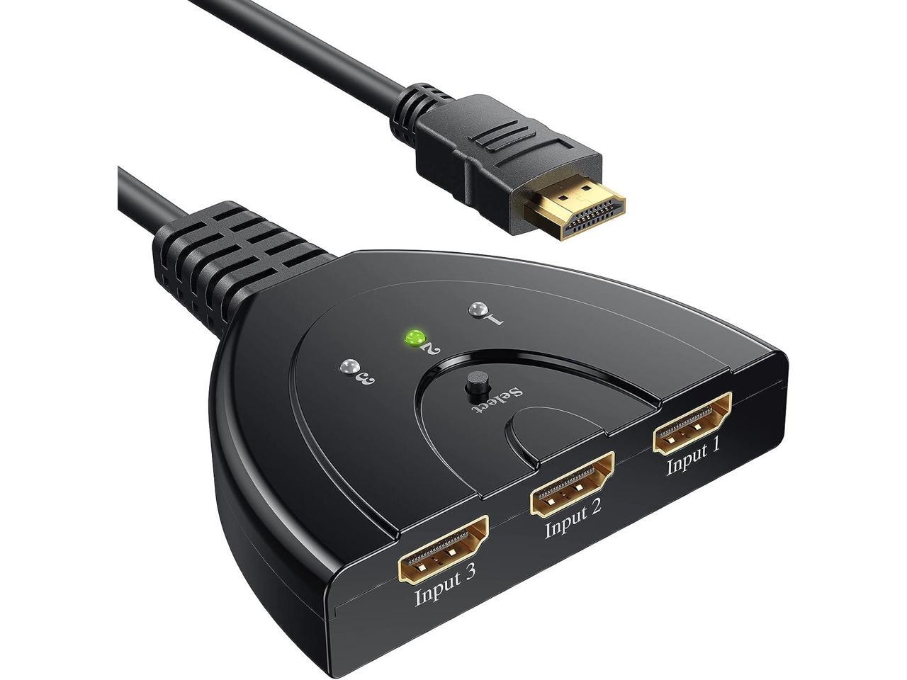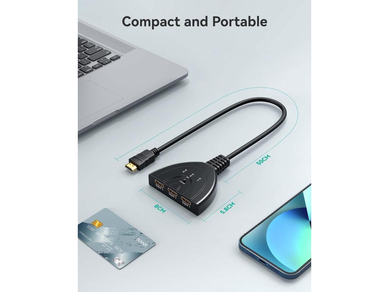 HDMI Switch 4K, 3 Port HDMI Switcher 3x1 HDMI Splitter Hub 3 in 1 Out with Pigtail Cable Supports 4K 3D HD 1080P for Xbox PS4 Roku HDTV