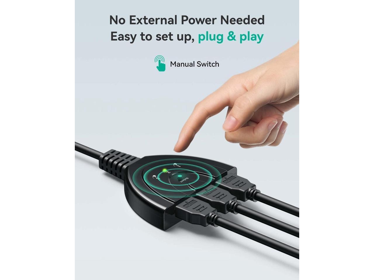 - Plug And PlayEasy to set up and use, no external driver required.The 4k hdmi switch .Press the switch button to change the signal within a second. It will be a good ideal for trade show, conference room, bedding room, living room, kitchen room and backyard.