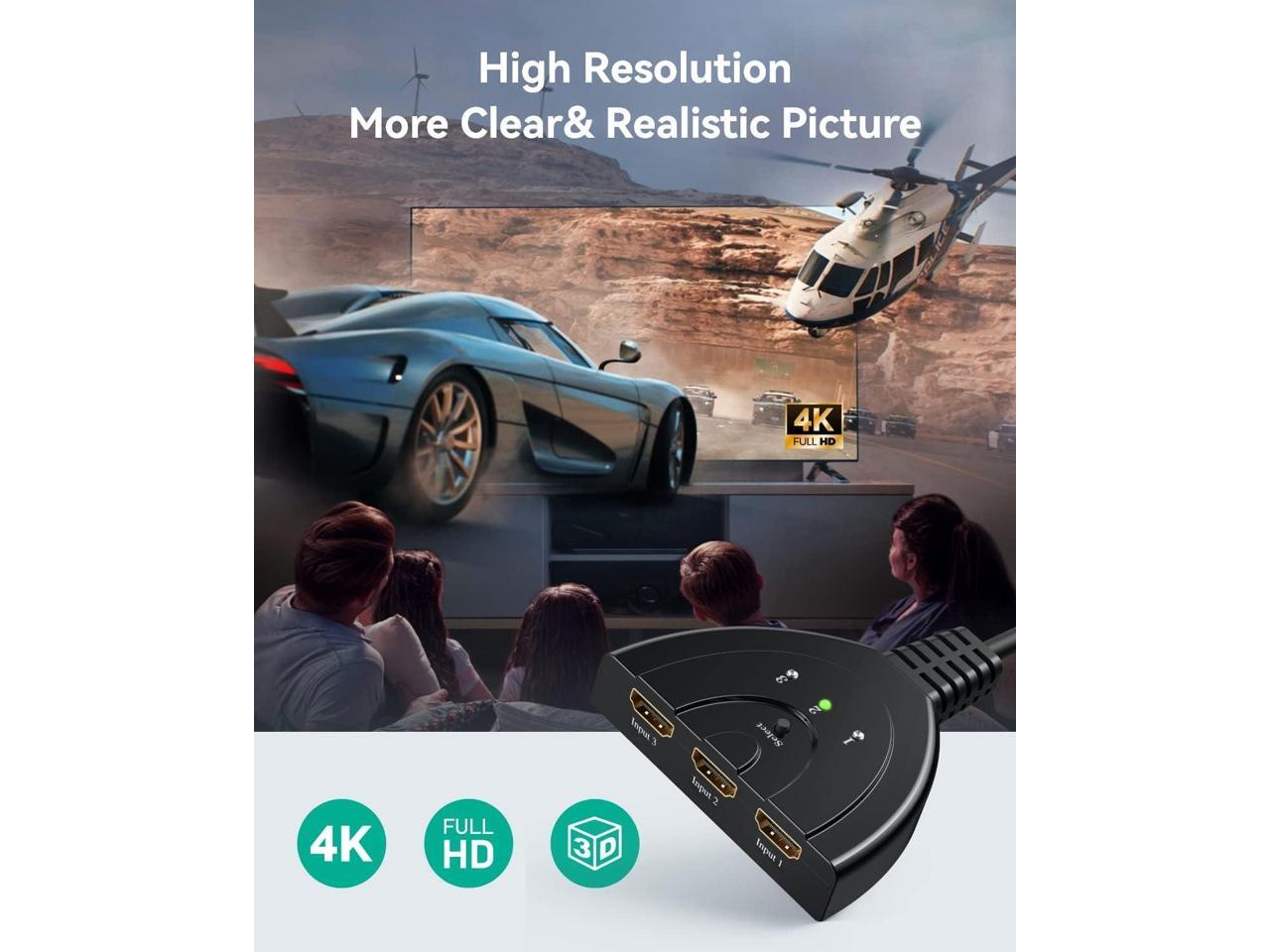 - Excellent 4K ResolutionHDMI Switch 4K equipped with HDTV 4K (3840x2160P) resolution, 3D display.Just connect your HDMI devicesyou can enjoy high-resolution video and audio. Note: To get 4K/3D video, all units connected to the switch outputs must support 4K/3D.