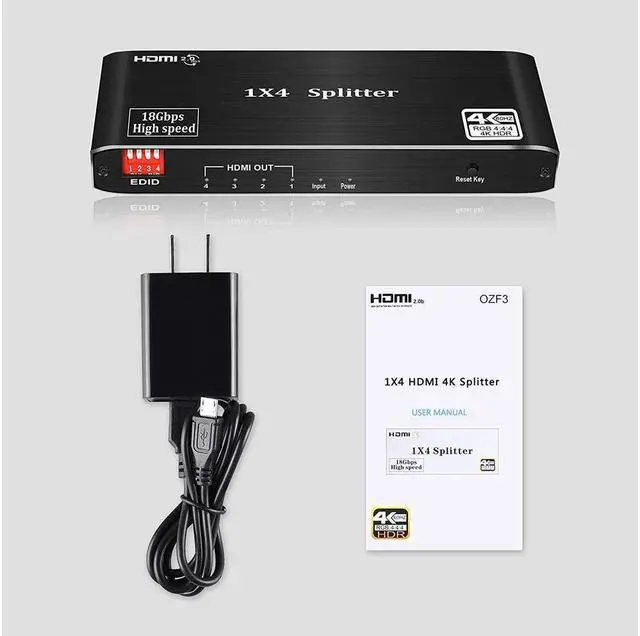 1x4 HDMI 2.0 b Splitter uses a single HDMI source, accessing to multiple HDMI sinks. It allows one HDMI device to be split easily to 4 HDMI compatible monitors or projectors. In additionit can be placed at the end of a long HDMI cable to regenerate the HDMI signal. The resolution of this hdmi splitter can be up to 4Kx2K@60Hz.