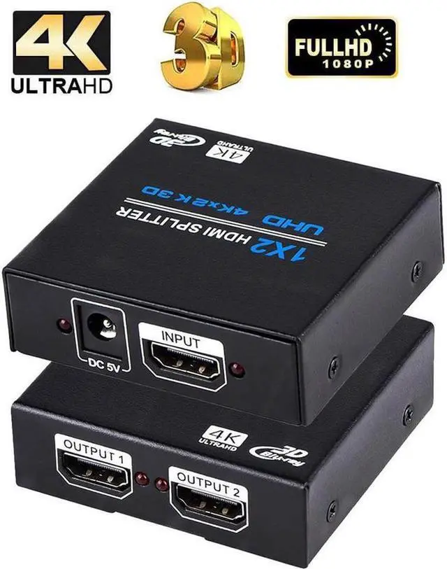 HDMI Splitter 1 in 2 out: The HDMI splitter distributes video and audio signal form 1 HDMI source to 2 HDMI displays simultaneously. No signal loss, no lag and create impressive high-definition picture.