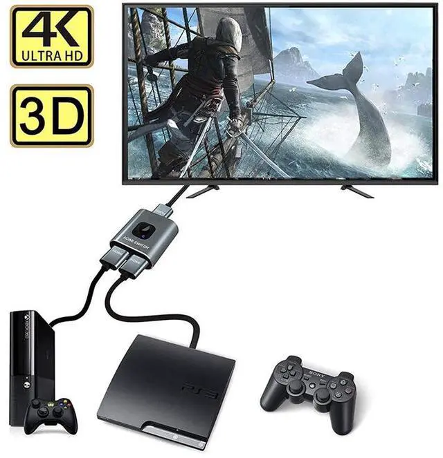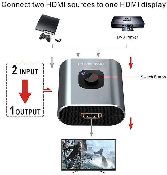 No External Power RequiredThis 4k HDMI switch box is easy to use, no external power supply is required, just press the button on the HDMI switch box to switch the input or output source.