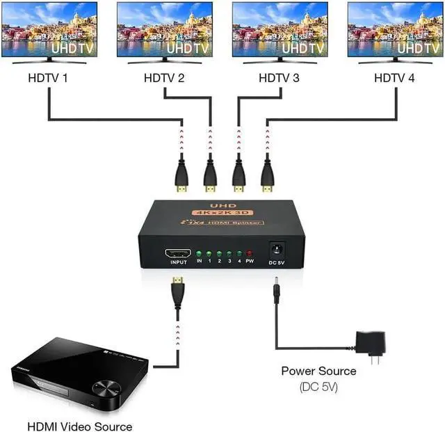 1x2 HDMI splitter distributes Audio and video signal from one single source to two different HDMI displays simultaneously, present you high quality video/audio without lag, flash, drop in resolution. You can enjoy the TV in the living room and the bedroom at the same time.