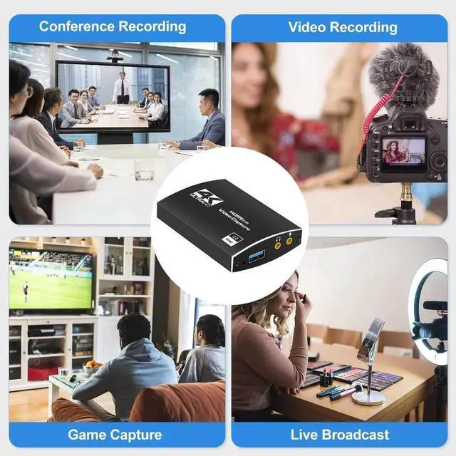 [USB 3.0 Capture Card 1080p 60fps]4K capture card is designed with high-end smart chip and made of Aluminum Alloy. With high-speed USB 3.0 technology, game capture card makes it no delay and makes the live streaming, sharing and recording simple and fast. Supports HDMI input resolution up to 4K@60Hz and record video signal up to 1080p 60fps for the game video and streaming media with a high-quality and glitch-free experience.