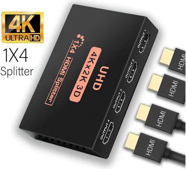 HDMI Splitter 1 in 4 Out Powered by AC Adapter, Hdmi powered Splitter Supports 4K@30Hz 3D Full HD1080P, Compatible with Xbox PS3 PS4 Fire Stick Roku Blu-Ray Player HDTV - 1 Input to 4 Outputs