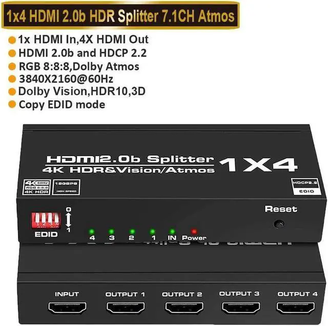 HDMI cable splitter 4K@60hz allows you to display ONE HDMI Source on FOUR screens, Support