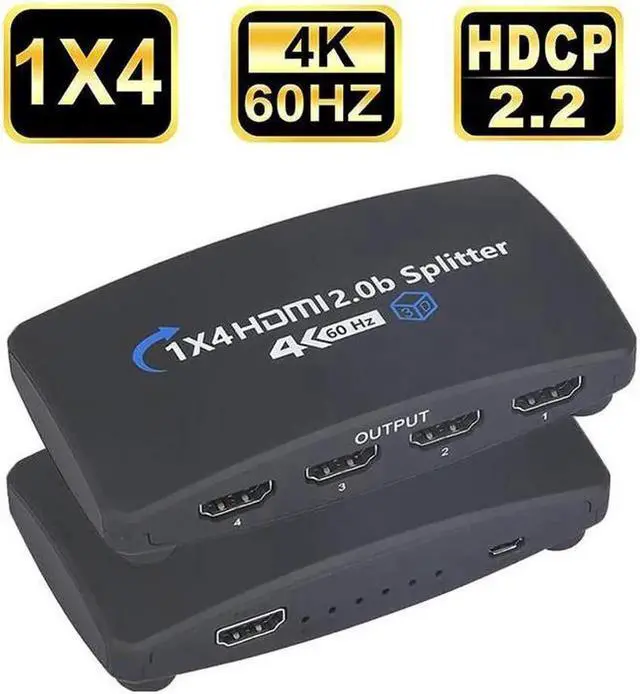 HDMI Splitter 1 in 4 out can distributes one input signal to 4 identical HDMI output devices. It means you can enjoy same full HD images on four screens. (
