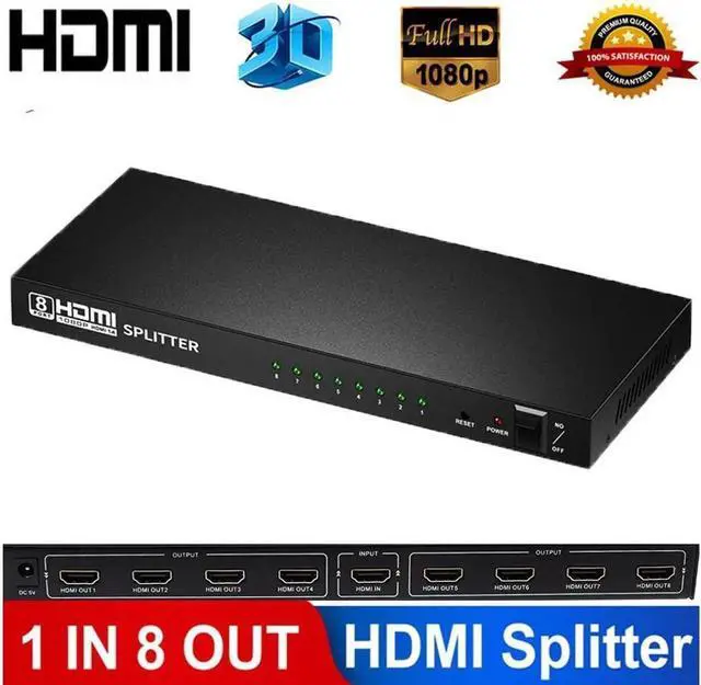 HDMI Splitter amplifies and distributes the HDMI input signal into eight identical, synchronized outputs. The splitter also has the ability of buffering and amplifying to achieve longer transmission distance of HDMI signal. Compatible with HDTVs, projectors, PC monitors, as well as various HDMI source devices including PC, cable/satellite receiver, Blu-ray DVD player, PS 3/4, Xbox, Chromecast, Amazon Fire TV etc., this splitter is suitable for home theater and other dual display applications such as data center control, information distribution, conference room presentation, school and corporate training environment.