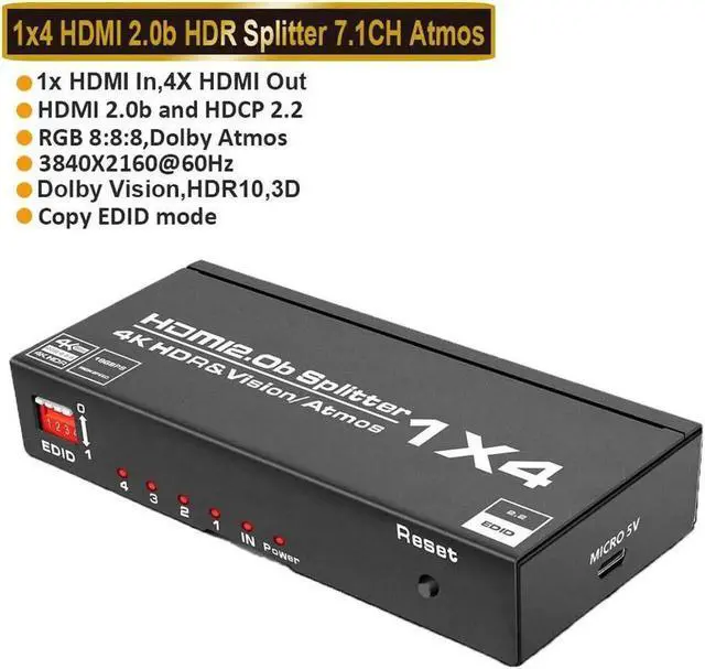 HDMI cable splitter 4K@60hz allows you to display ONE HDMI Source on FOUR screens, Support