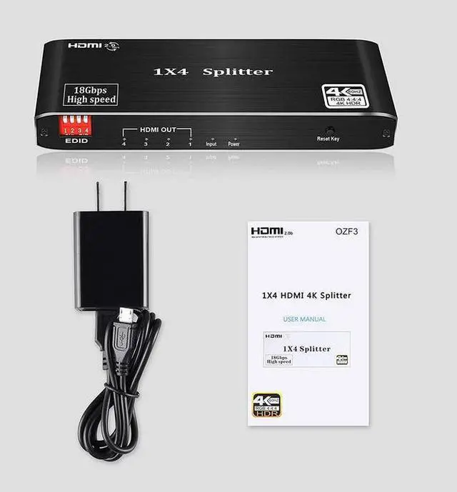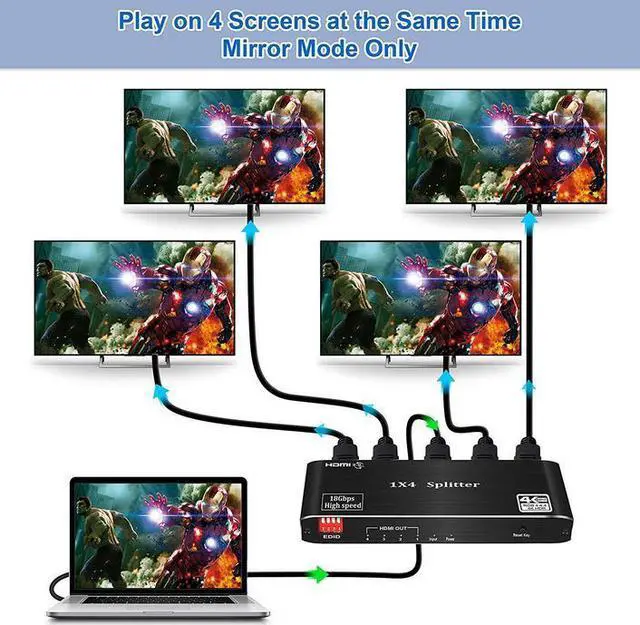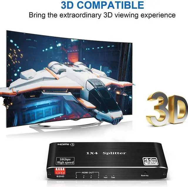 HDMI 2.0 Splitter 1x4 - 4K@60Hz 1 in 4 Out Distribution Amplifier, HDCP 2.2, 8 EDID Modes, 6Gbps Bandwidth, IR Remote Extension, Metal Housing for Home Theater & Digital Signage