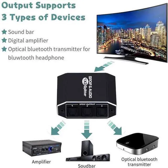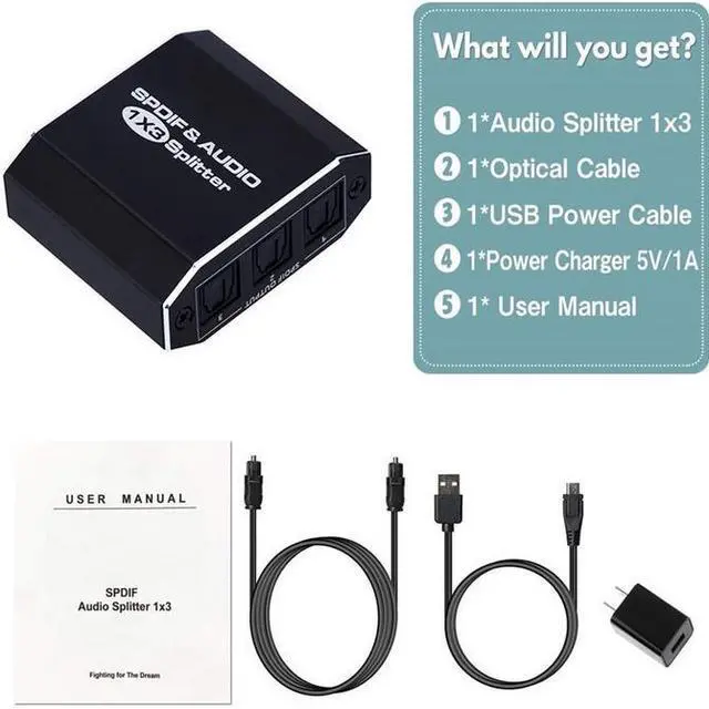 Package Includes:Optical Audio Splitter (1x3)