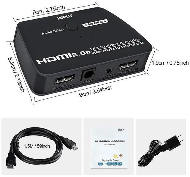 *One HDMI input converted to two HDMI+ Audio(SPDIF+R/L )Output to achieve the synchronization of audio signal separation.