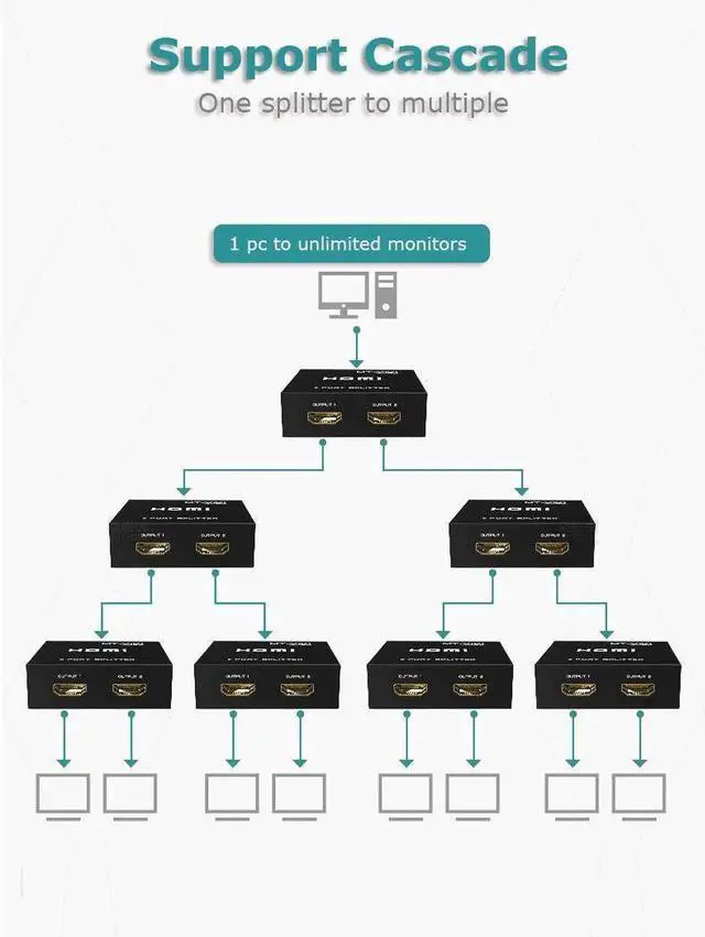 HDMI SPLITTER FOR DUAL MONITOR RESOLUTION SUPPORT