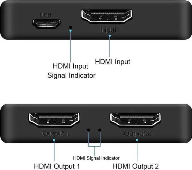 - HDMI2.0b SPLITTER 1 IN 2 OUT - MIRROR ONLY: HDMI 1 in 2 out Splitter 4K@60Hz can distribute 1 HDMI input signal to dual HDMI display (TV, monitor, projector etc), duplicating or mirror video and audio simultaneously without any loss. Note: Not support extend and CEC!