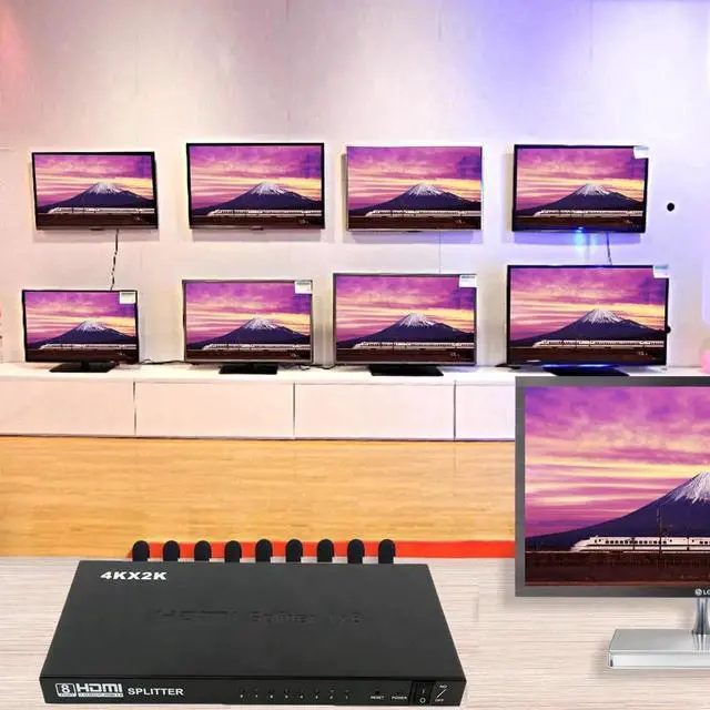 Ultra HD 4K HDMI Splitter 1 In 8 Out 8 Port Repeater Amplifier Hub 3D 1080p HDMI Splitter Compatible with Ps4 / Xbox One/Fire TV/Apple TV/Sky Box/Stb/DVD/Laptop/Blue ray, Power Supply Adapter Include