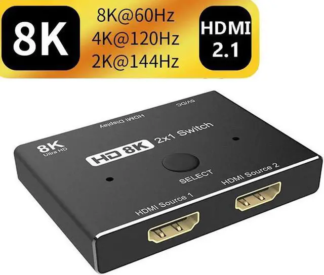 8K HDMI-compatible 2.1 switch: Support 8K@60Hz, 4K@120Hz, resolution, provide you with transfer rates up to 48Gbps and backward compatible with all previous HDMI-compatible standards.(You need connect standard HDMI-compatible 2.1 cable to enjoy visual effects)
