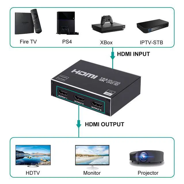 Input Device support: Computer, PS3, PS4, Xbox, Blu-ray DVD player, Fire TV, STB etc. Output Device support: Projectors, Full HDTVs, monitor, etc.
