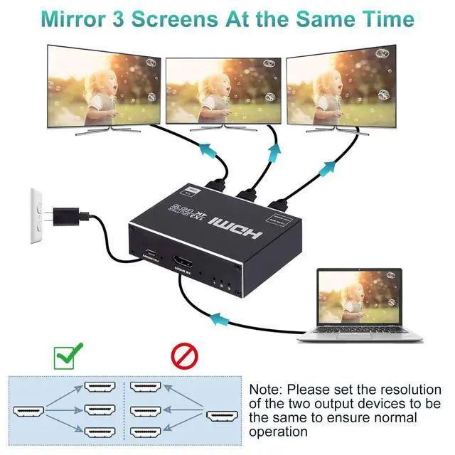 2. HDMI splitter distributes the picture according to the lowest resolution standard.