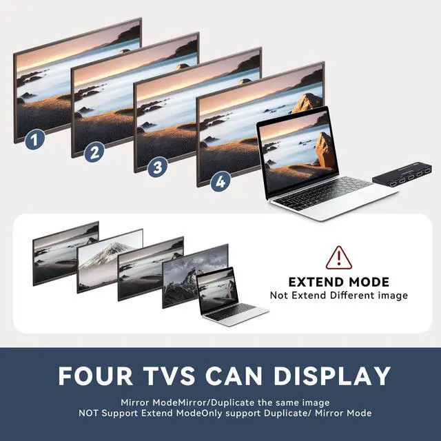 • True hdmi duplicator, not a switch: Please note this device is a splitter/duplicator. It mirrors one single input to four identical outputs (1 in 4 out). It is designed for display mirroring and cannot select between multiple input sources like an hdmi switch.