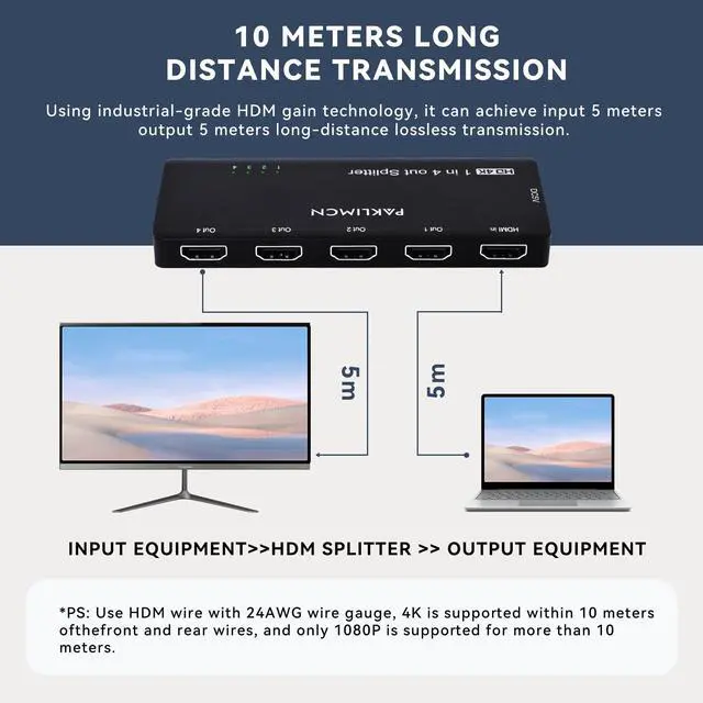 • Powered for stable performance: As a powered hdmi splitter, it includes an external power adapter to ensure a strong, stable signal to all four output ports without degradation. This makes it function like a robust hdmi extender, ideal for longer cable runs in conference rooms or home theaters.