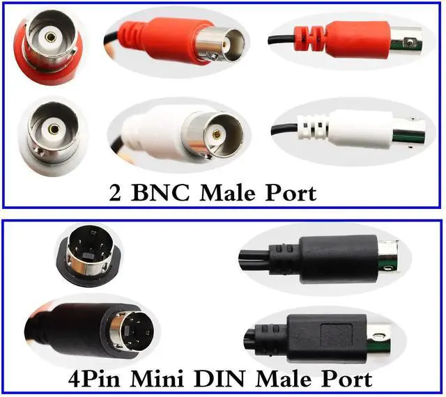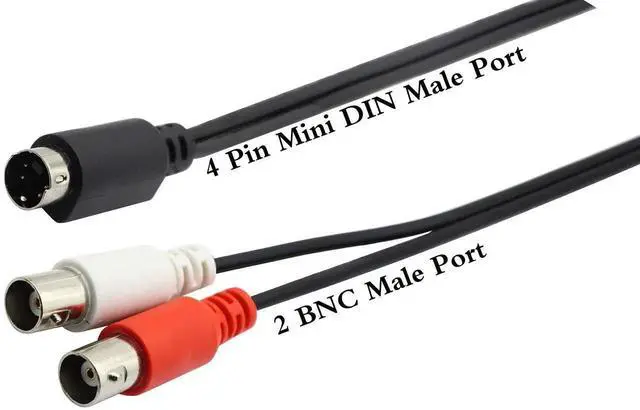 Connector A: 1*4 pin mini-DIN male adapter Connector B: 2* BNC Male Y splitter cable.BNC center pin (gold plated)