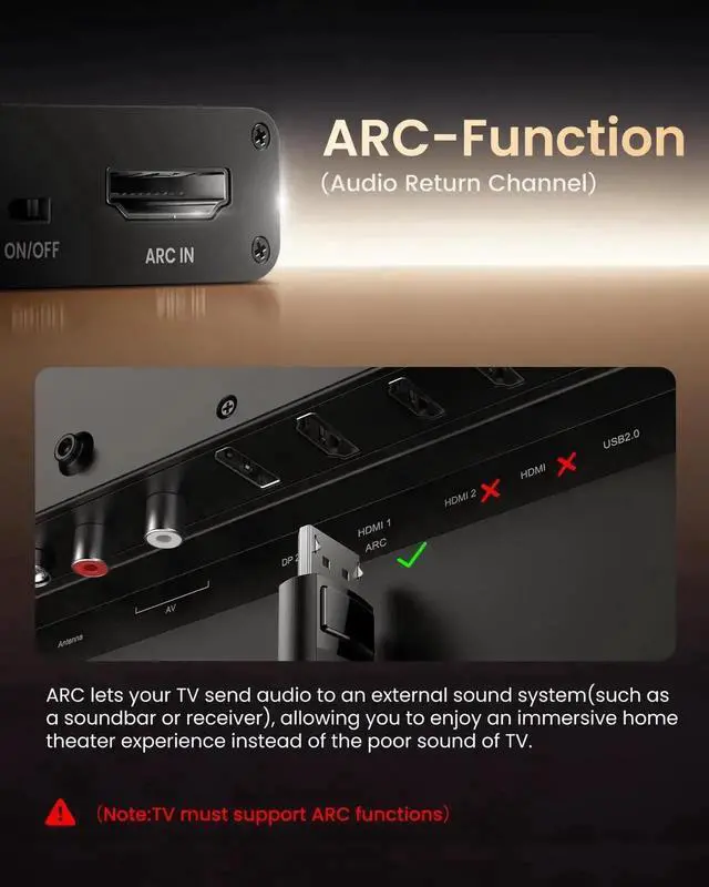 - [Plug-and-Play & Package Contents]: Simply connect and enjoy. Perfect for enhancing your home entertainment system! Compatible with Sony TV, Samsung TV, LG TV, Fire TV, Roku TV, and more. Package Contents:HDMI ARC audio extractor ×1, USB power cord ×1(Power adapter included), Optical cable ×1, Manual ×1.