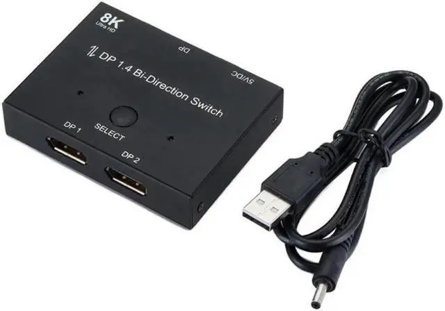 Displayport 1.4 KVM Switch Splitter 8K@30Hz 4K@120Hz 1x2 or 2x1 Bi-direction Switch Splitter DP Converter for Source and Display