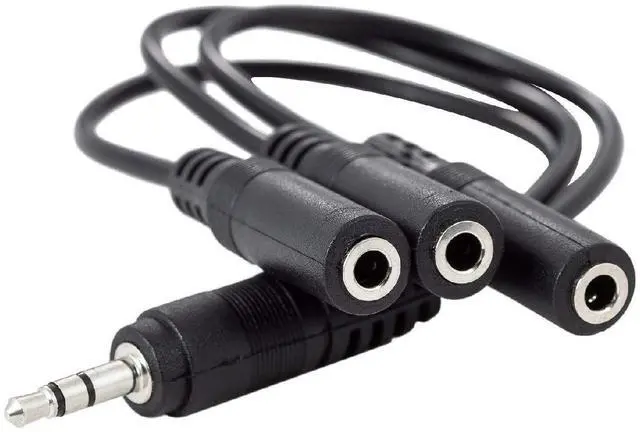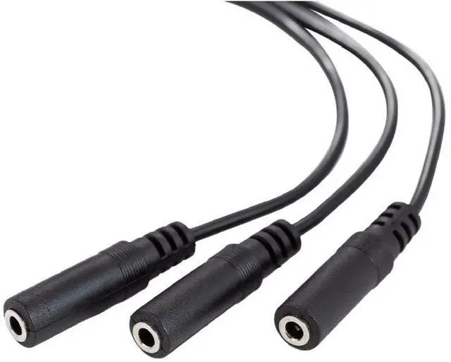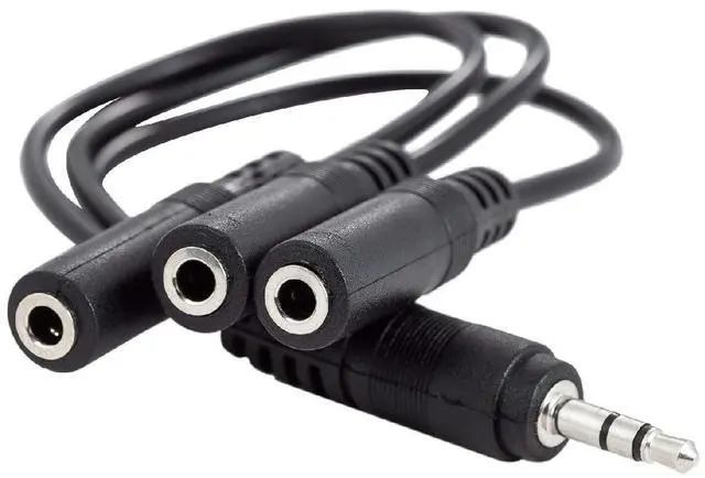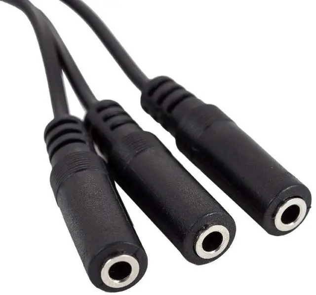 1x Audio Input to 3x Audio Output. Please note this cable can't be used as 3 input to 1 output 3.5 mm Mini-Jack (3 Position-TRS) Male Plug 3.5 mm Mini-Jack (3 Position-TRS) Female JackNickle-plated molded connectors with strain relief ensure a solid high quality connection between the connected devicesLength: 8.5 inches