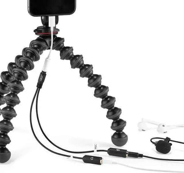 & GO: Add the JOBY Wavo microphone and your favorite wired headphones to create an upgraded audio experience for your video calls live streams web conferences interviews and moreGO