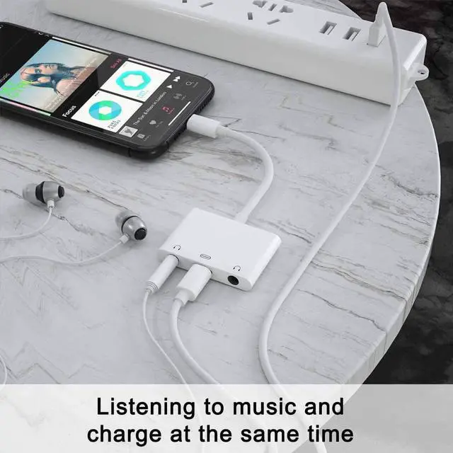 Dual Headset Splitter The 3 in 1 iPhone Charge and Listen Adapter supports Dual 3.5 mm Headphone Jacks to work at the same time and charge Support listen music and two person enjoy movie together. This iPad pro headphone adapter designed for iPhone lovers good friends families to share happiness and entertainment. Hi-Fi Voice Audio&Faster ChargingThis iPhone Adapter for Headphone Jack uses 100% copper core built in DAC smart chip support 96 KHZ and 24 bit audio output for i0S headphone provides high fidelity and lossless audio. This iPhone Dongle Adapter Support 2.4A fast charging function the charging speed is increased by 1.5 times.