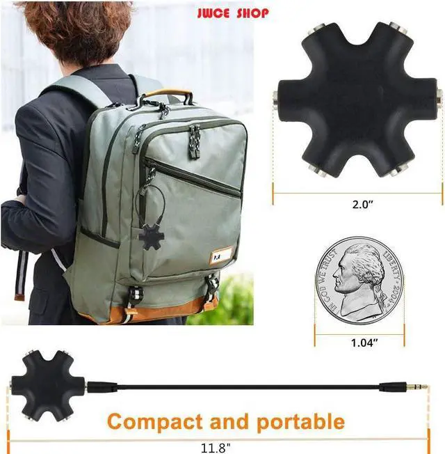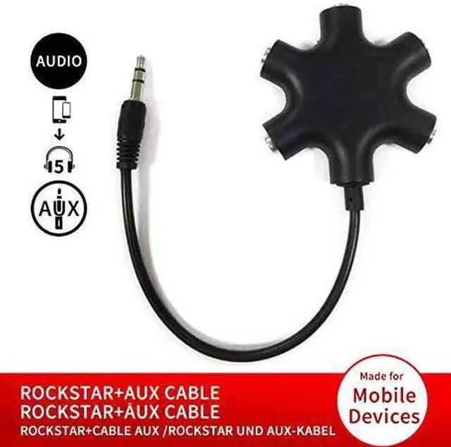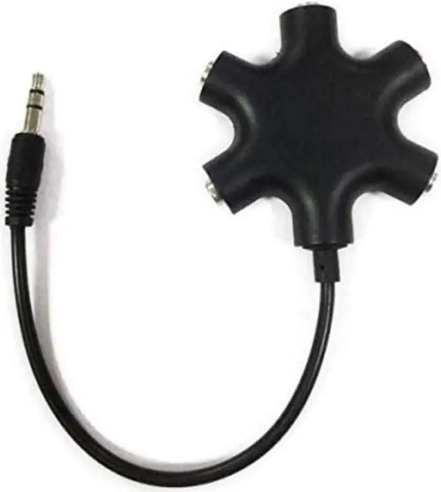 STEREO CABLE - Splitter 3.5 mm Audio 5 way 6 port Male to Male plug Stereo Audio Cable is included(Five AUX ports for attaching headphones or auxiliary cables One hard-wired auxiliary cable for connecting to devices Works with any device with an AUX port)ENJOY SOUND - This is the good way to share your favourite voice with your friends enjoy the sound together with multi headphone audio splitter