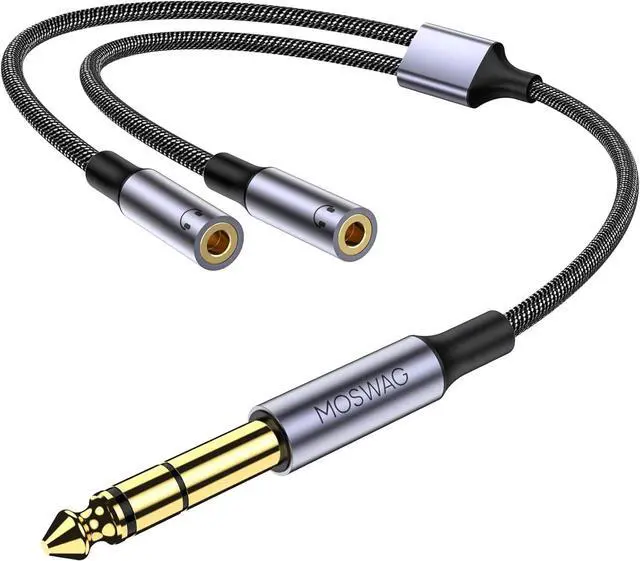 [MOSWAG 1/4 to Dual 1/8 Adapter 30cm] Dual 3.5 mm TRS female jacks with 6.35 mm TRS male plug adapter ideal for connecting dual 3.5 mm audio devices with a 6.35 mm device. For instance keyboard to dual headphones guitar amp to dual speakes or headsets amplifier to double headphones amplifier to speaker 6.35 mm headphone to computer adapter mixing console to speaker adapter[MOSWAG Dual 3.5 mm to 6.35 mm Spilitter Adapter Compatibility] Guitar Bass Electric Piano Headphones Speaker Amplifier Mixers Home Audio Systems Karaoke Systems and More[Experience Superior Audio] With the MOSWAG 6.35 mm to dual 3.5 mm female adapter featuring 24K gold-plated connectors for stable high-speed lossless transmission and tin-plated oxygen-free copper wiring for high-fidelity pure sound.